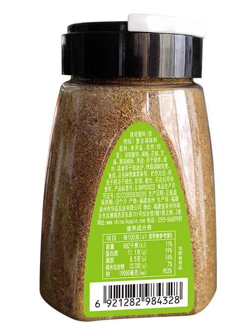 - 食用鹽、孜然(枯茗)、谷氨酸鈉、辣椒、花椒、芝麻、黑胡椒粉