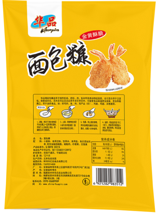 - 1、調(diào)味:把洗干凈的食物瀝干水后裹上一層薄薄的面粉并依個(gè)人口味灑上食鹽、胡椒粉及其它調(diào)味料。 2、上漿:將食物全身浸入調(diào)勻的雞蛋液里(面粉和雞蛋的混合物) 3、包裹:將上漿的食物,用華品牌面包糠均勻的包裹好,放置2-3分鐘備用。 4、油炸:將油加熱至175℃-180℃,把備用的食物放入油鍋,翻動(dòng)食物,炸至呈金黃色即可撈出